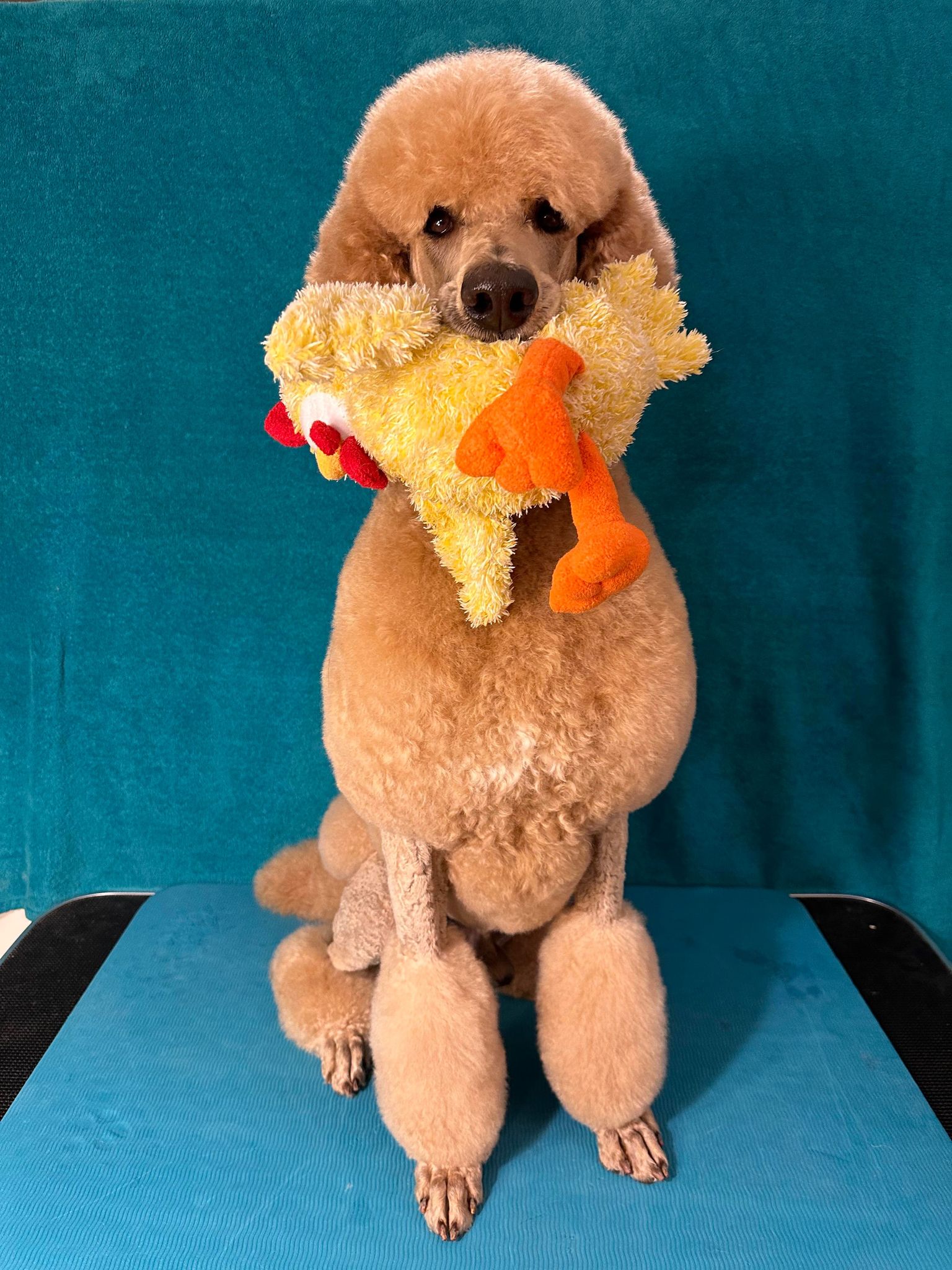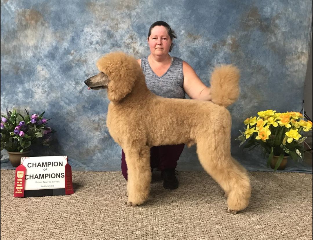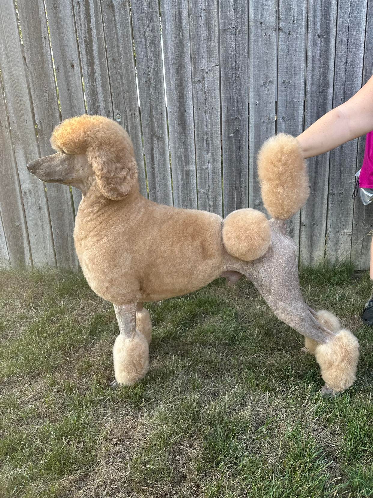 Rio has earned his UKC Grand Championship and SPOT ON (the UKC equivalent of a CGC) among other titles! He is starting his journey in the field, nose work, rally and dock diving. He is his other Mom’s service dog. Rio has a remarkable temperament, with drive, but a reliable “off switch”. Fully health tested – clear by parentage of vWd, NE and DM. He is available to approved girls.